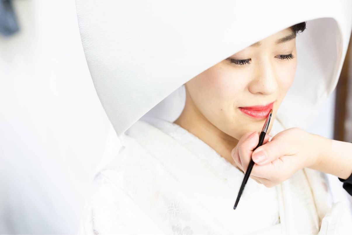 メイクは和装・ドレスどちらの時も、目力よりもチークや口紅に重点をおいてもらいました。