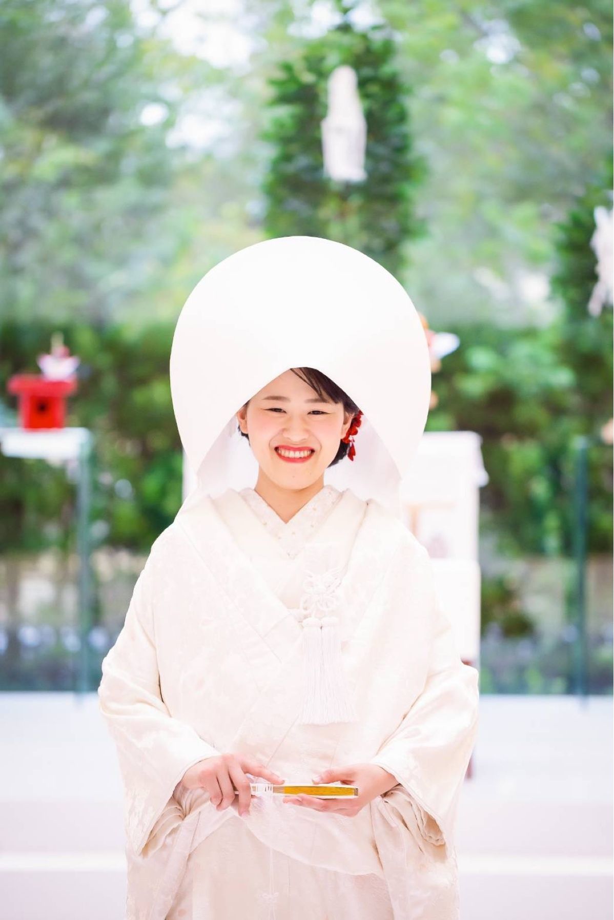 和装では花の小物を、ドレスではベールとリボンカチューシャをつけました。