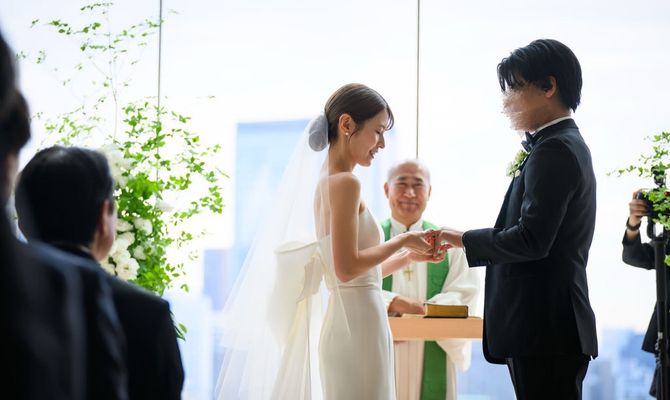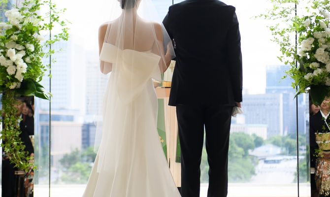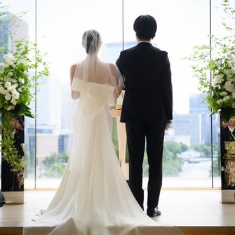6年前に、SNSで見た皇居を見渡す全面ガラスの葵西会場に一目惚れし、結婚式をするならパレスホテル東京(PALACE HOTEL TOKYO)で、披露宴会場は葵西がいい!と長年思い続け、婚約後に憧れのパレスホテル東京(PALACE HOTEL TOKYO)のみ式場見学をし、選びました!