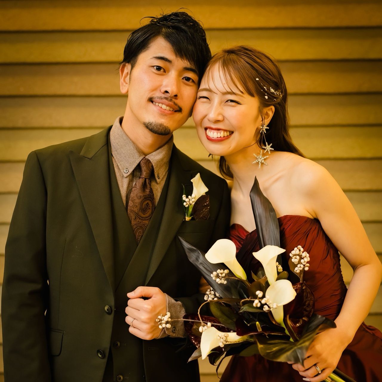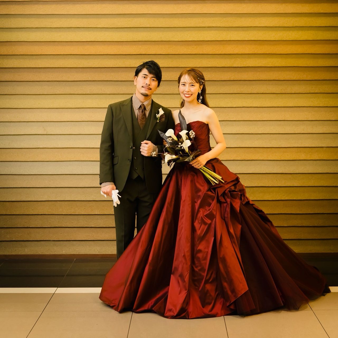ジェームス邸の雰囲気にとても合うワインレッドのドレスを選びました。