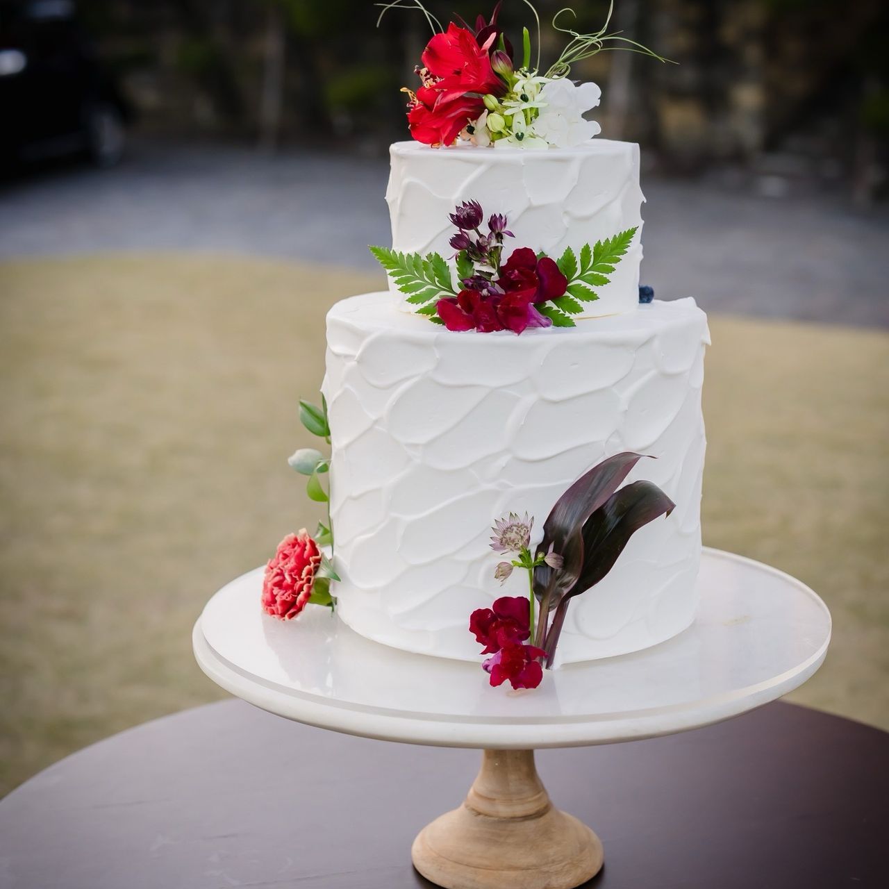 ナチュラルな雰囲気に装花のこだわりを詰め込んだウェディングケーキにしました。