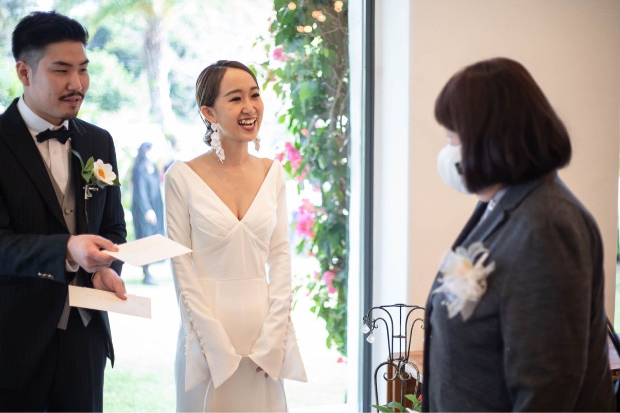 バージンロードを父親と歩き、父親が旦那と手を合わせた時、めちゃくちゃ泣いていました。チラッと他の家族を見たら、みんな泣いてて…うそ!なんでみんな泣いてるの!って思っていたらもらい泣きしちゃいました。