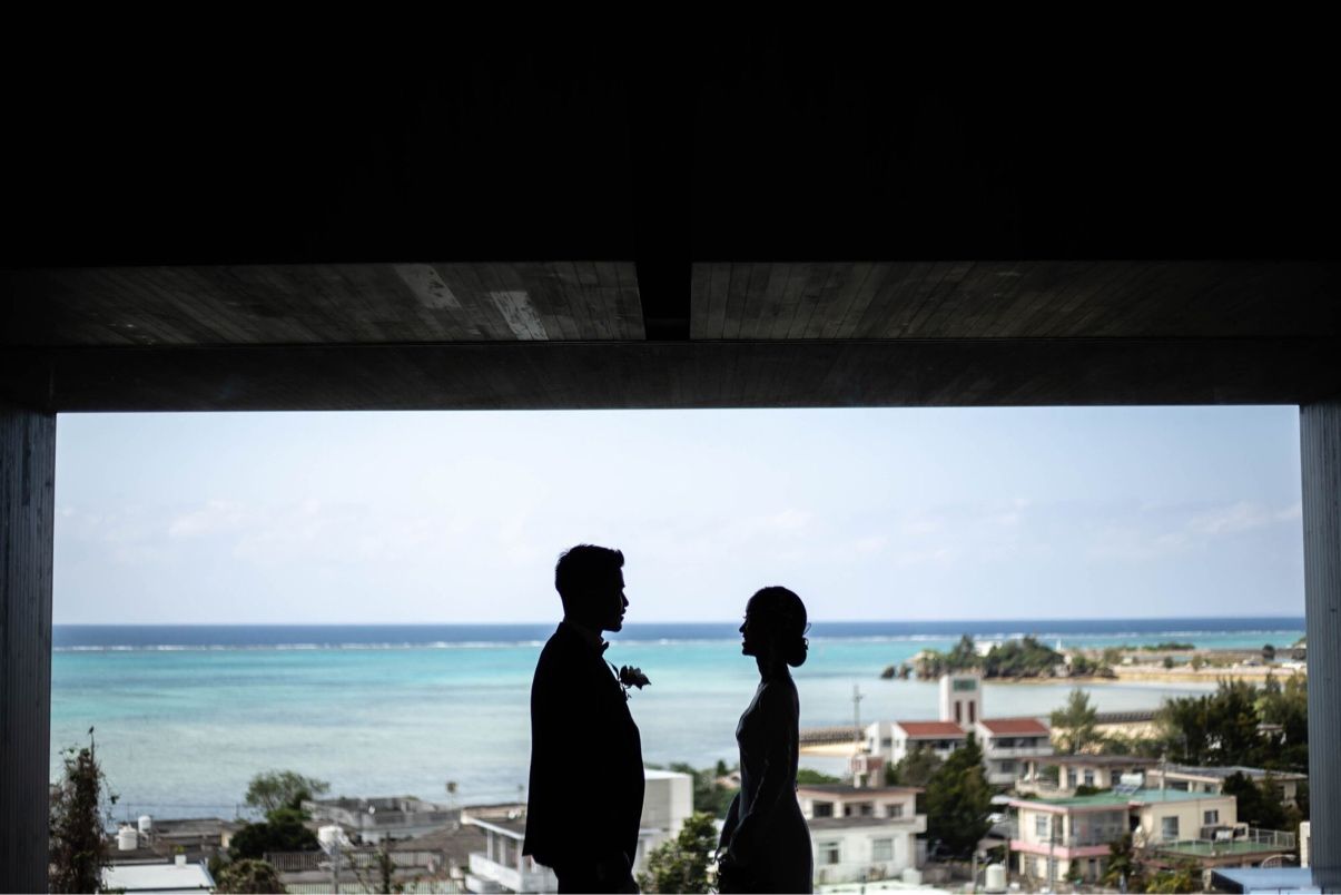 写真を撮ってもらうときには逆光を使ったかっこいいショットをお願いしました。海バックの雰囲気がとてもよく、シンプルで素敵に仕上げていただきました!