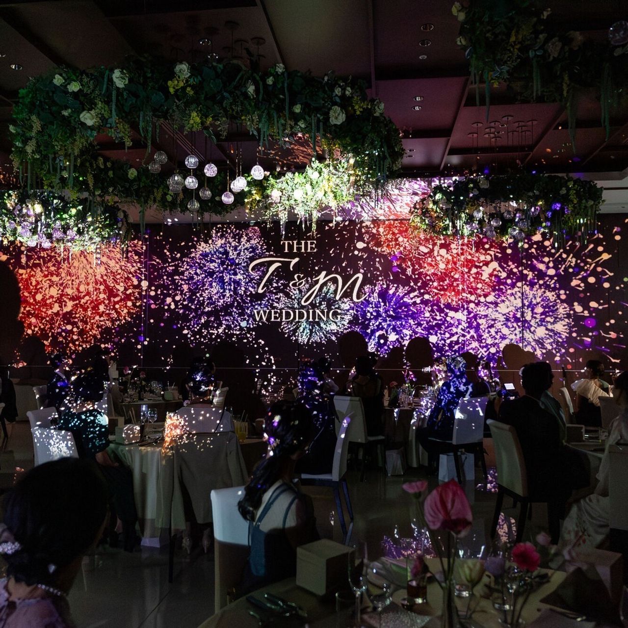 プロジェクションマッピングを活かしたサプライズ入場を取り入れました。壁一面に映し出された迫力ある映像の中から、壁が開いて登場する演出です。後日、友人から「テーマパークみたいでワクワクした」と言ってもらい、とても嬉しかったです。この設備が備わっていたことも、会場選びの決め手のひとつになっています。