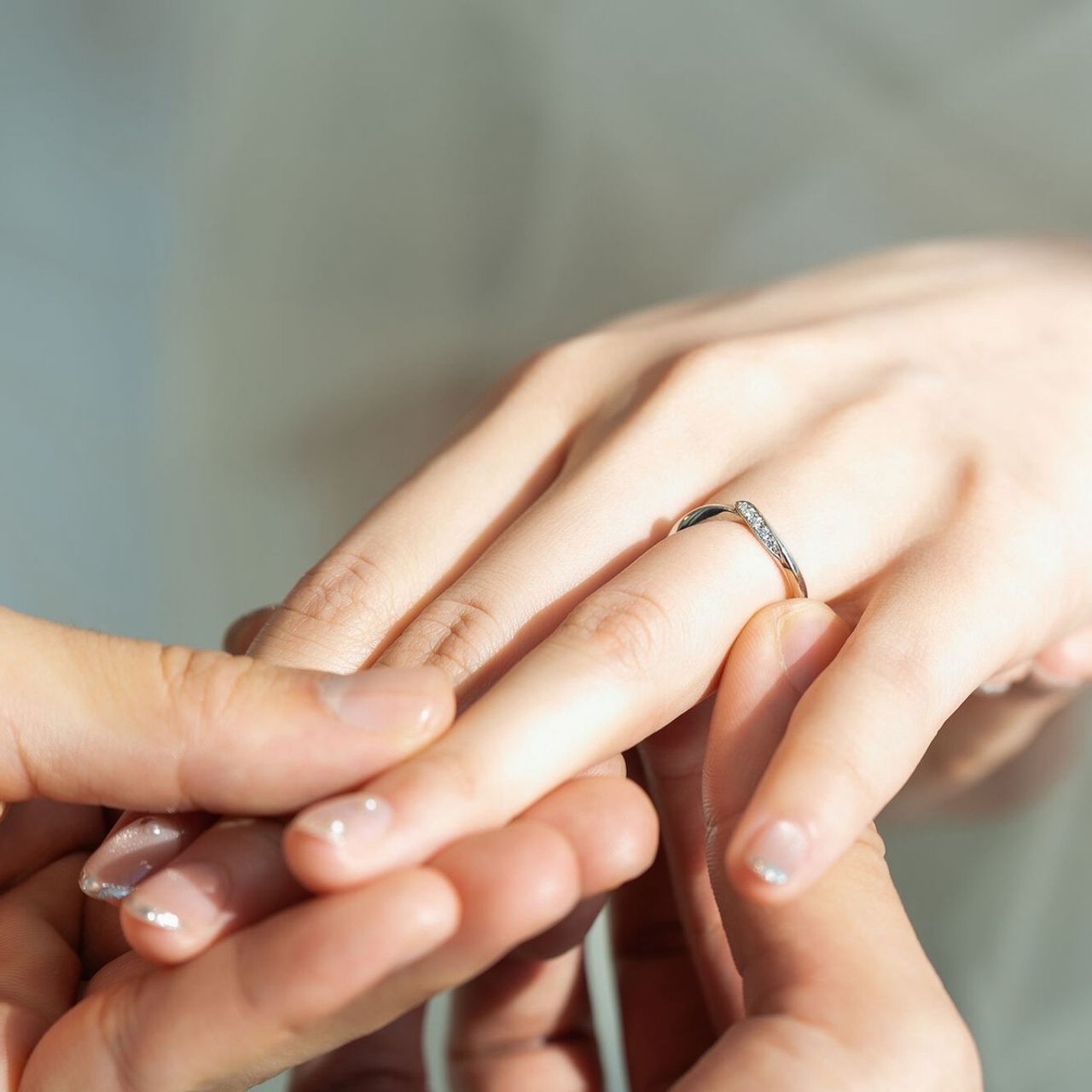 ダイヤのあしらいが程よく、さりげなく輝く上品なデザインが魅力です。婚約指輪とセットリングになっているため、重ねづけをしたときにいっそう美しく見えるよう設計されているところも気に入っています。仕事中でも、ふと手元でキラッと光るたびに、気分が上がります。