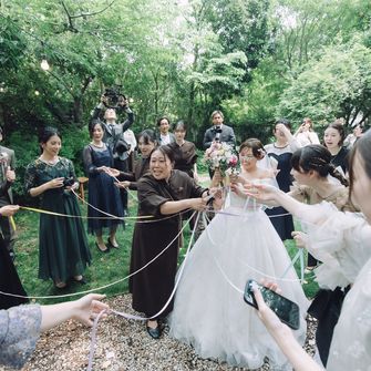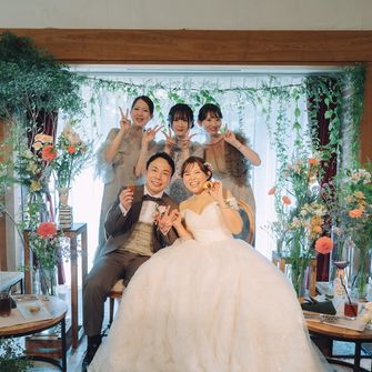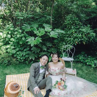 ふたりの好きなアーティストが一緒なのでBGMもそれぞれ意味を込めて決めたり、ガーデン挙式なのでお庭も広くピクニック風フォトスポットを作ってそこでフォトラウンドをしました♪ゲストにも私たちの大好物が伝わるように工夫しています☆彡