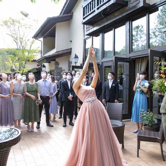 ガーデンでの登場や教会から披露宴会場まで、友人同士で乗れるカートのようなものも取り入れ、ゲストの方にも長野の良いところである自然をたくさん感じてもらいました!