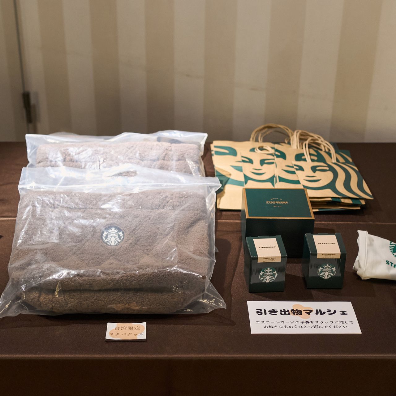引き出物には、これまでの旅にちなんで、海外限定のStarbucksグッズを中心にセレクト。引き菓子は、タイや台湾で人気のお菓子をご用意し、旅の雰囲気を感じられるラインナップにしました。