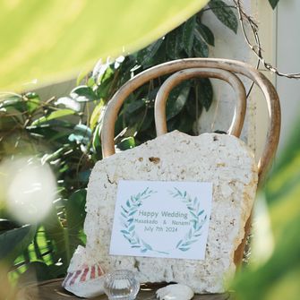 リゾート婚、夏婚だったので挙式はビーチでワイワイ!夏を感じよう〜!というイメージで。