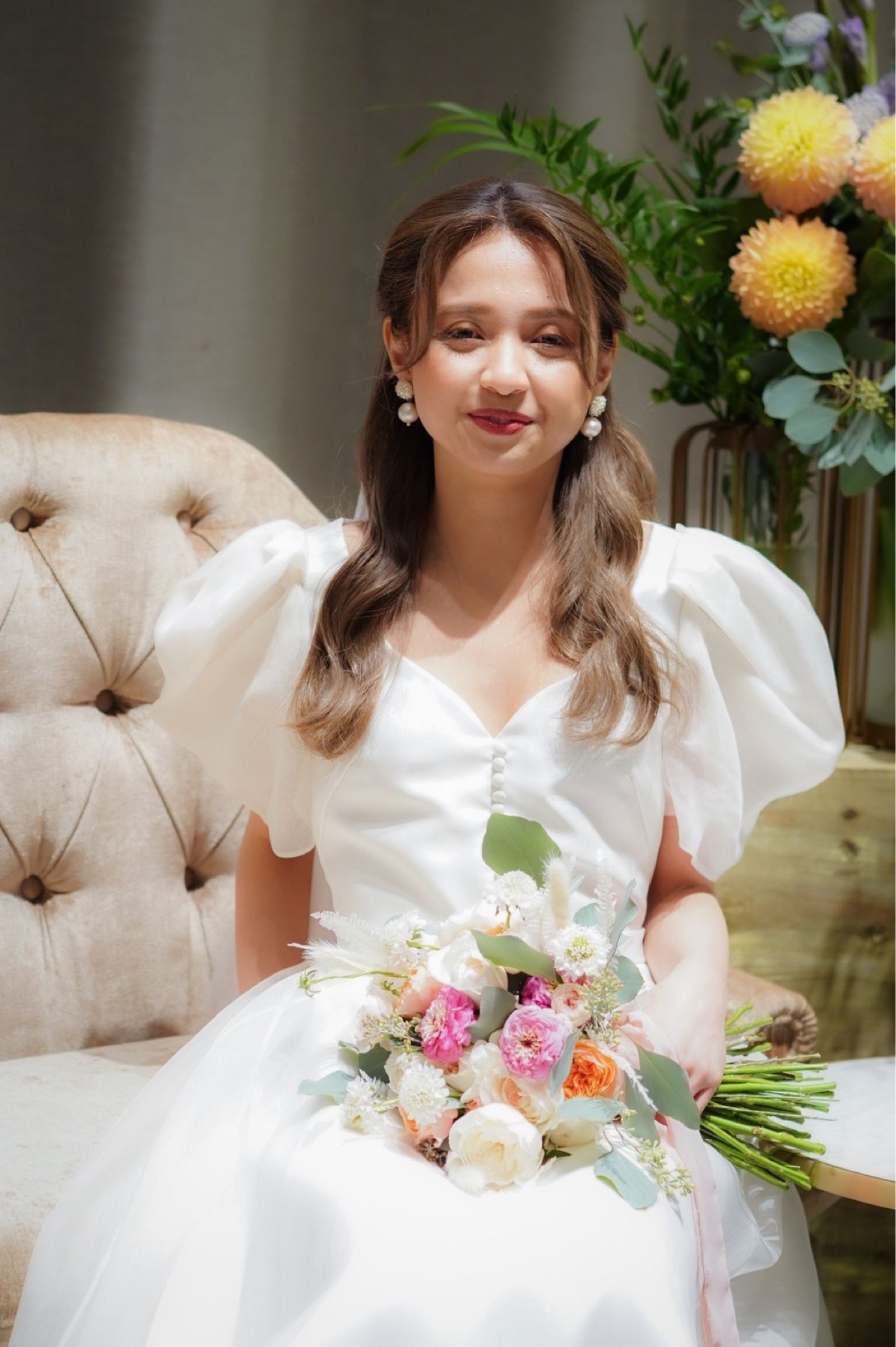 挙式と披露宴ではイメージは韓国の花嫁さんのような少しプリンセス感がある可愛らしい感じを出してもらいました。