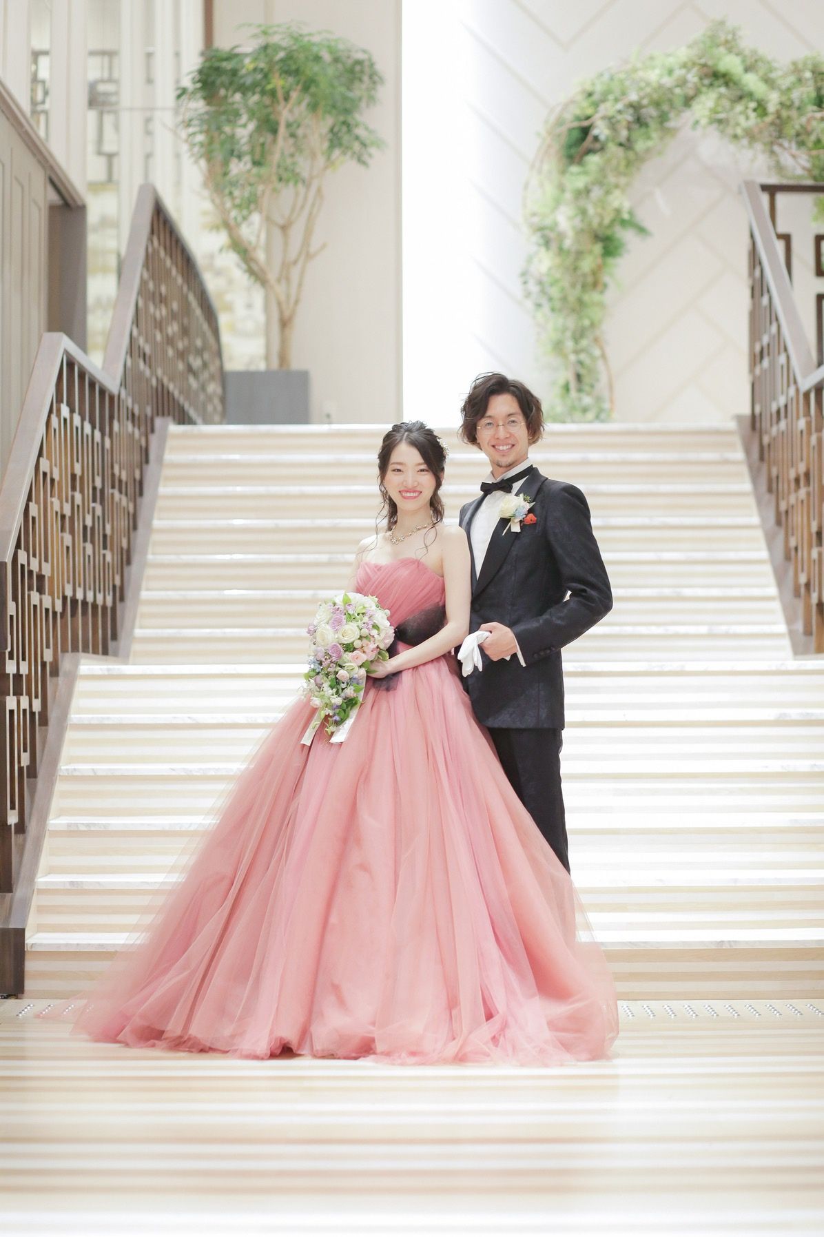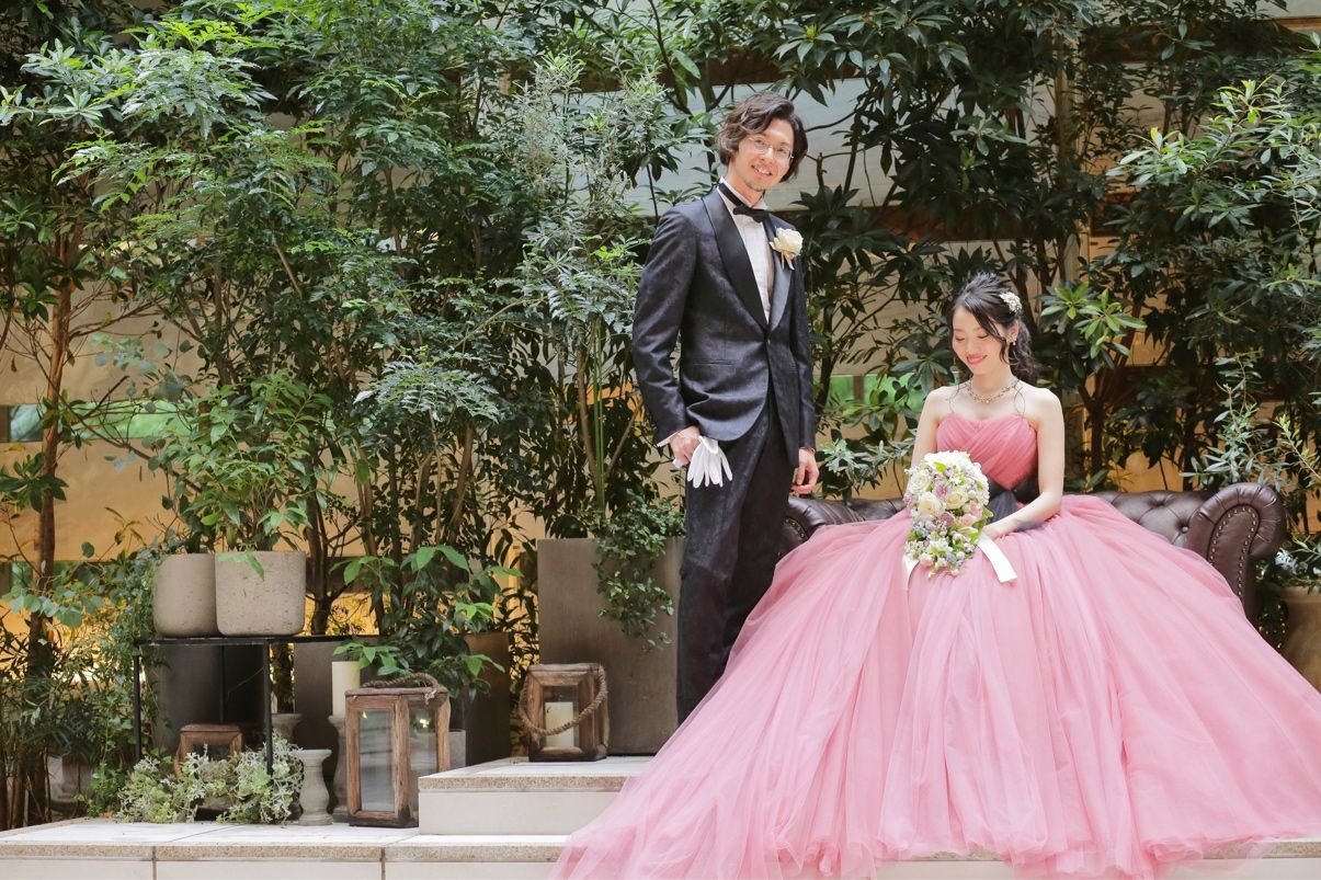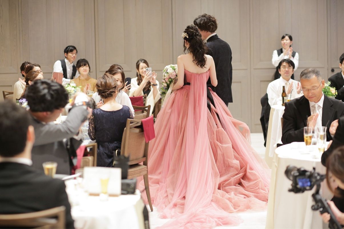 レッドとピンクで迷ったのですが、ピンクを選びました。お色直しはガーデンテラスからの再入場にしたのですが、草木の緑にピンクソフィアが映えて、その時の写真はとてもお気に入りです。
