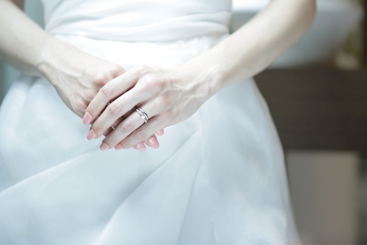 アルテミシアという三日月がモチーフになっていて、満ちる時も欠ける時も共に寄り添ってという意味があるそうです。内側には2つのリングを重ねると入籍日とGrow Old With Meになるように刻印してもらいました。