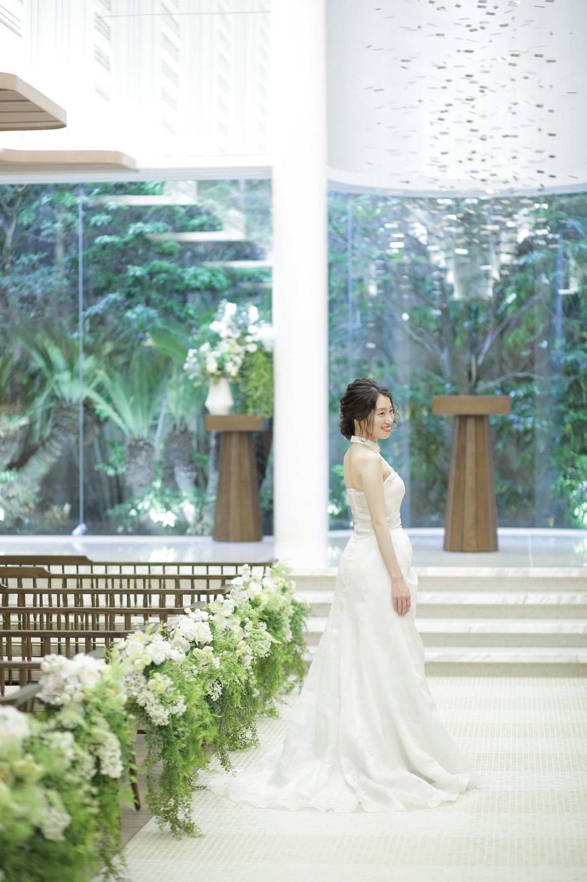 とても開放感のあるチャペルで、天気に左右されることなく明るい雰囲気の中、挙式を挙げることができます。初めて見た時はチャペルの明るさ、天井の高さに感激しました。