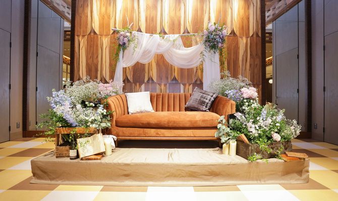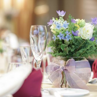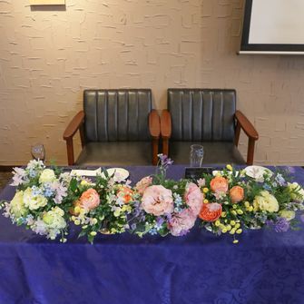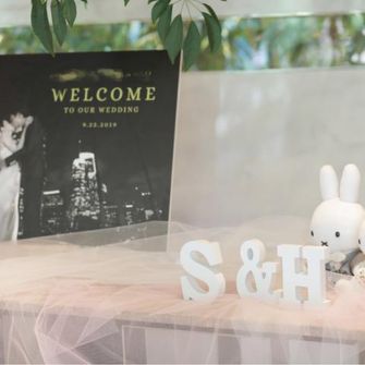 テーマ「ゲストと振り返る2人の思い出」ゲストに楽しんでもらうことを最優先に、料理やケーキには2人の思い出の物や好きな物を取り入れました。