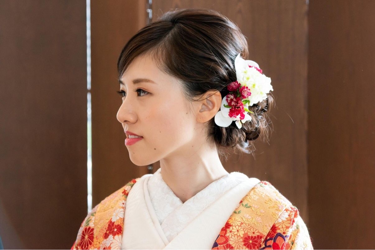 お色直し(低めのシニヨン)と、ヘアスタイルをチェンジし、雰囲気を変えることに意識しました。