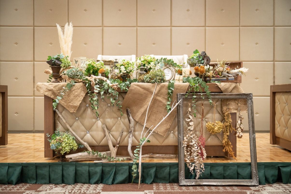 在り来りなパーティーや人と被るのが嫌だ!という私達は、衣装からテーマカラー、会場イメージ、ペーパーアイテム、テーブルアイテム、ウェルカムスペース、ケーキなど細部までこだわり抜きましたが、特にというとテーブルに乗せた流木です!