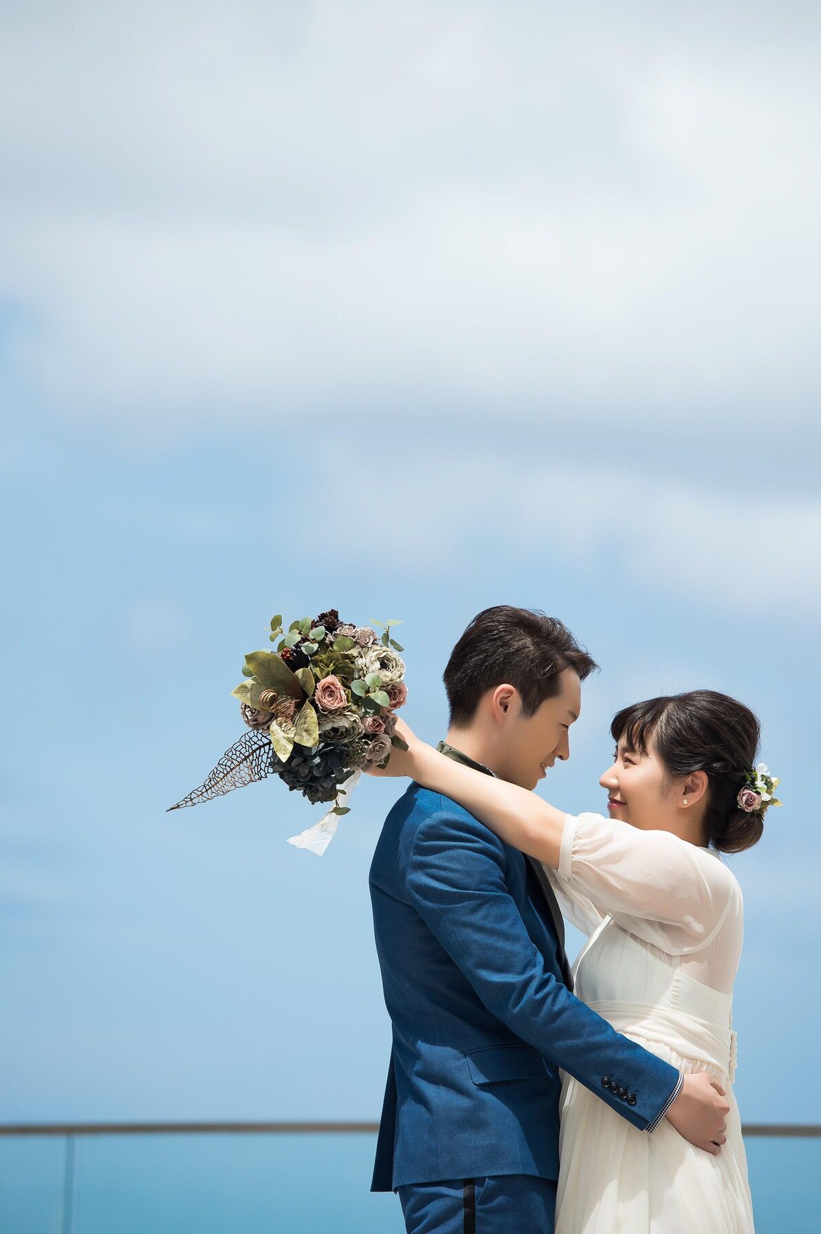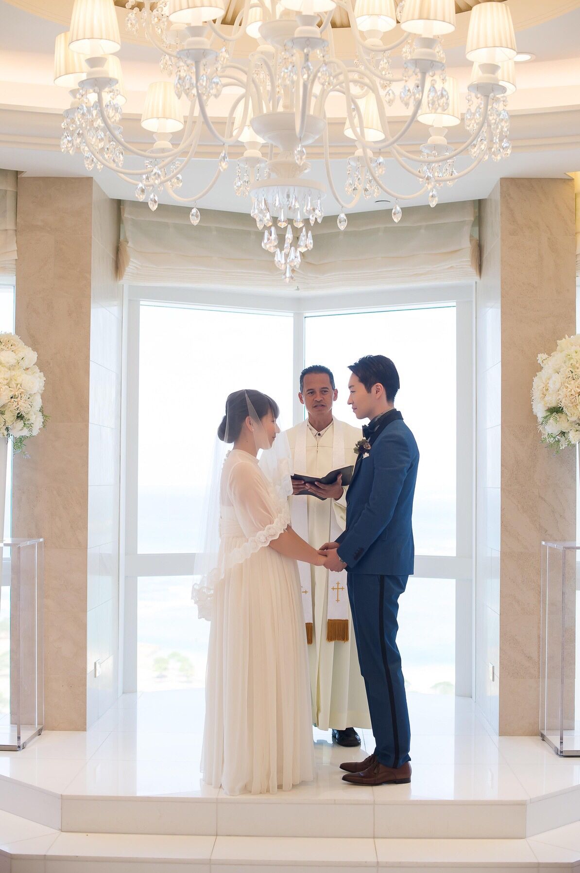 ホテルの最上階(33階、地上107m)にチャペルがあり、オーシャンビューなので180度の大パノラマの中で式をあげることが出来ます(* * )天気がいいと青空をバックに最高にいい写真が撮れます ◎
