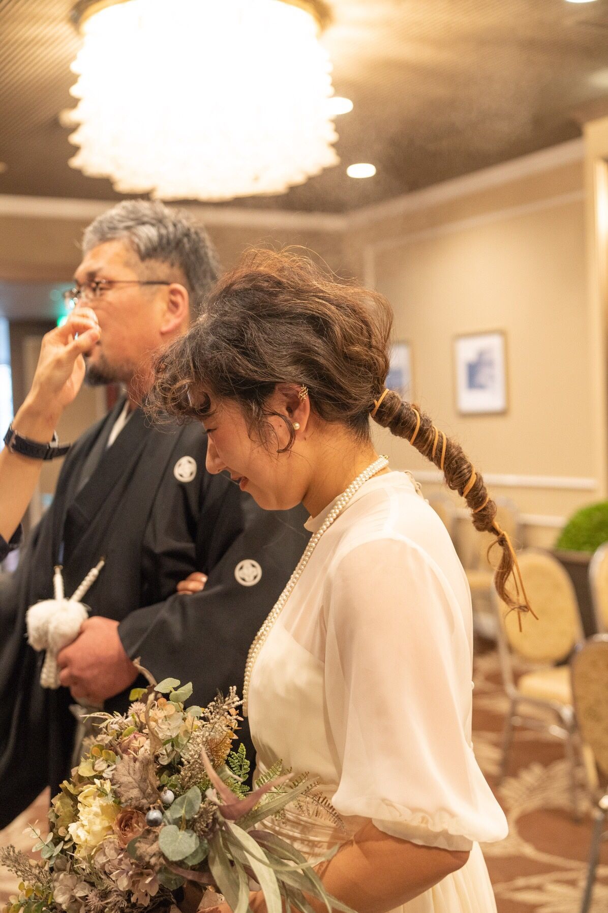 パーティーで、お金や時間を掛けて選んだり着付けた打掛けですが、入場からお色直しまでの時間があっという間に過ぎてしまい、こだわって選んだものが皆さんと写真をあまり撮らないままお色直しをしてしまった事に後悔しています。タイムスケジュール上仕方ない事なのかもしれませんが残念でした。