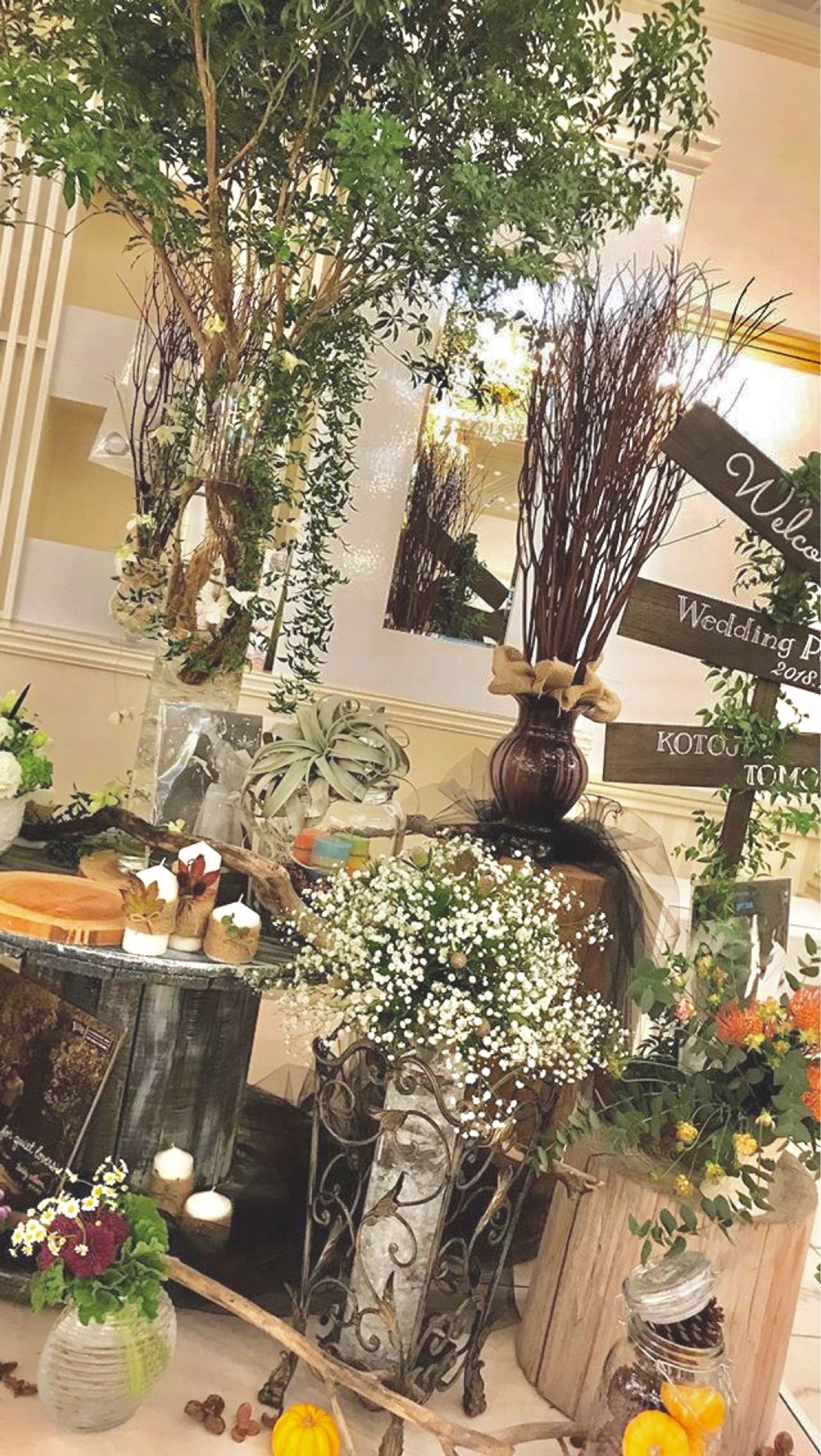 ピンクとクリーム色を基調として、本物のお花を使った花束と、リースをデザインに入れてもらいました。