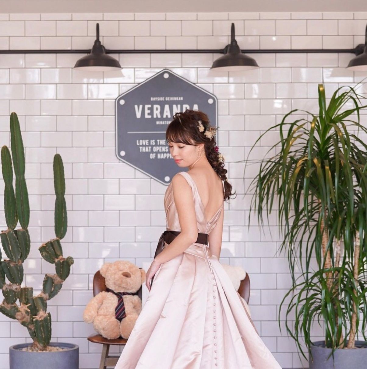 白のドレスにするかカラードレスにするか撮っても迷いました。ウェディングドレスとは全く違う形がいい・みんなが着てないような色や形がいいというのがあり、ドレスコーディネーターさんに相談したところおススメを持って来て頂き、そのドレスにしました。