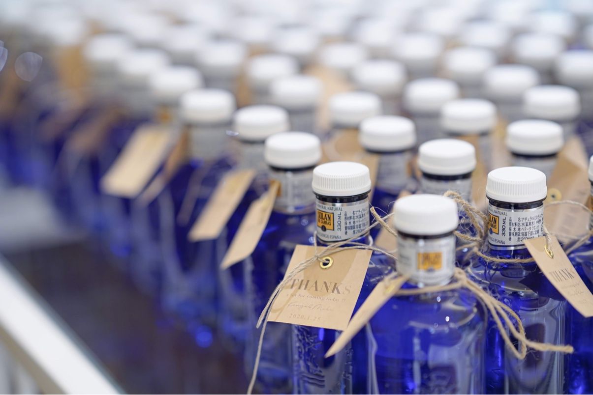 ソランデカブラスに自分たちでタグをつけてお渡ししました。水なら老若男女問わず無駄にはならないかなと思い… 花嫁アカウントの中ではよく見かけますが実際ゲストには珍しかったようで好評でした。