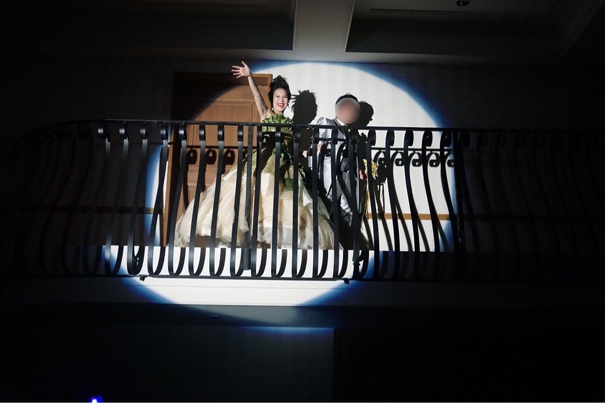カラードレスでの再入場の際、階段上から見下ろした時にフラッシュリングとリボンワンズをゲストが振ってくれている景色がとても綺麗で感動しました。ライブ会場で歌うアーティストになった気分でした(笑)