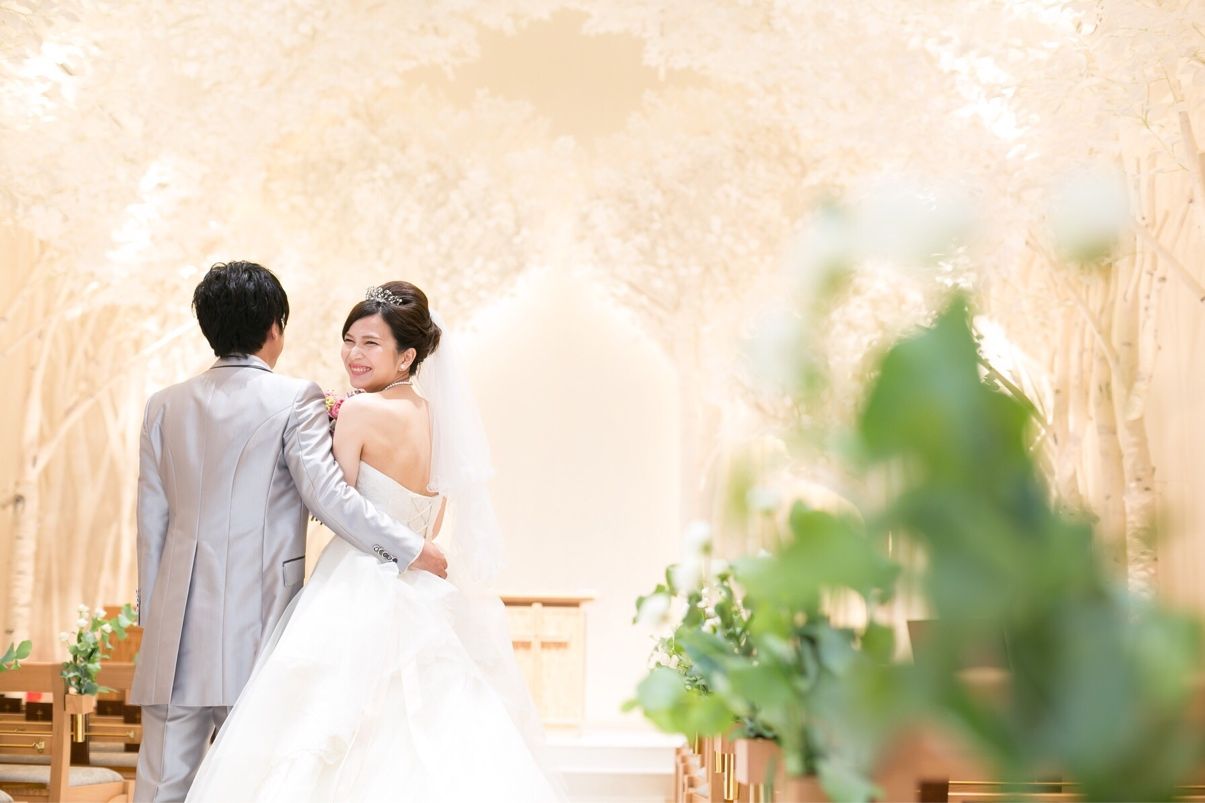 チャペルが真っ白の木に囲まれて、森の様なデザインでとても珍しいです。ゲストの印象に残りやすいと思います!