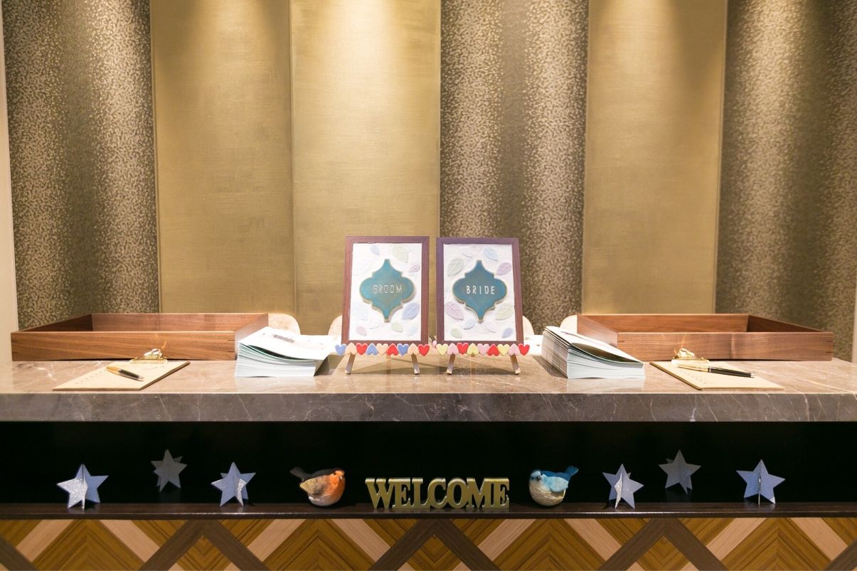 式場の壁面のデザインをイメージして、ゴールドにしました。式場に実際にある隠れ三つ葉を入れたり、式場のロゴを入れました。