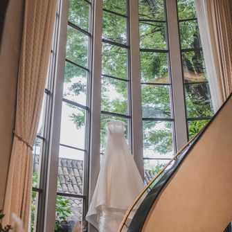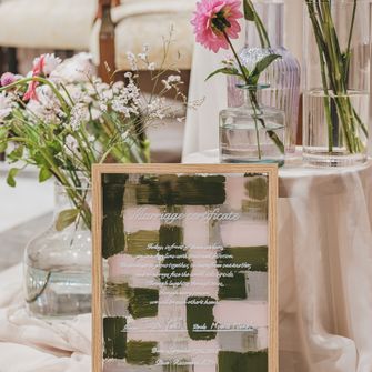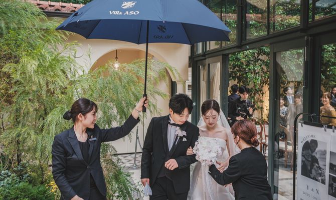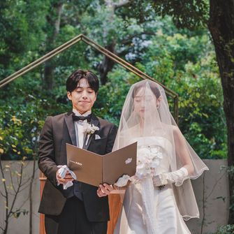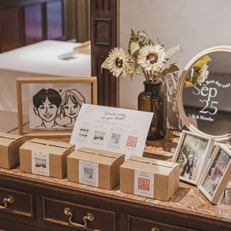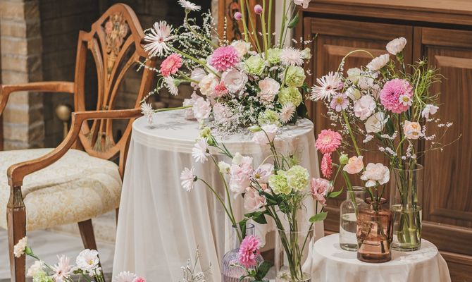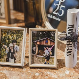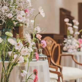 『大人可愛い雰囲気で、ゲストに来てよかった!と思っていただける式』をテーマにしました。また、夫婦でサンボマスターが好きなこともあり、裏テーマは『全員優勝〜自分たちもゲストも主役!優勝!笑〜』です。大人可愛い雰囲気は、装花やペーパーアイテムに取り入れ、来てよかった!と思っていただけるようにお料理にこだわったり、プリクラブースを設置したりしました♡
