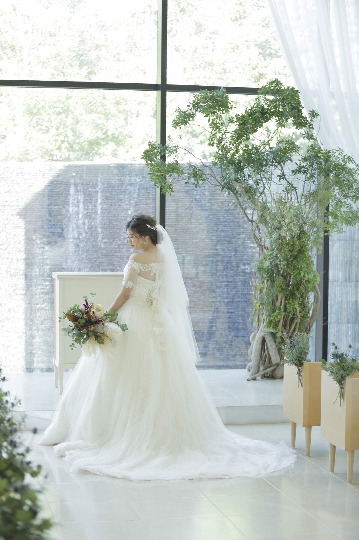 ガラス張りで太陽の光が沢山入ってきてとても明るい挙式場でした! 緑もたくさんあってナチュラルウェディングにピッタリでした。