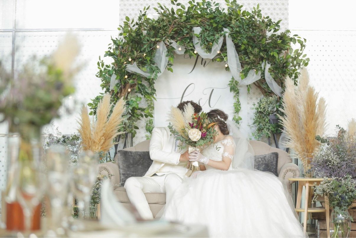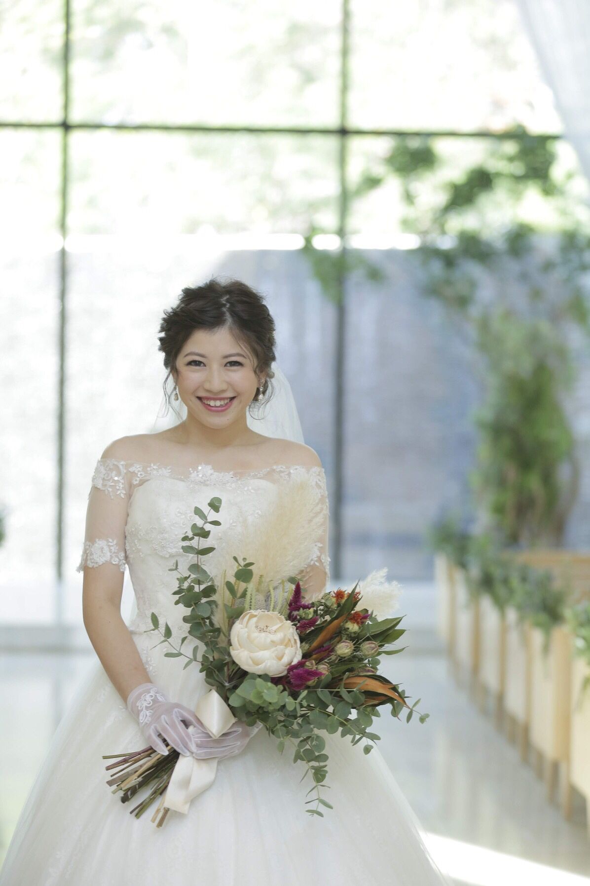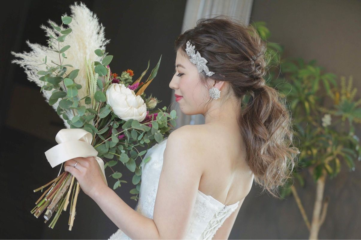 ドライフラワーをつけたかったのでドレスに合うドライフラワーを探しつけました! メイクはあえていつも通りブラウン系で統一しました!