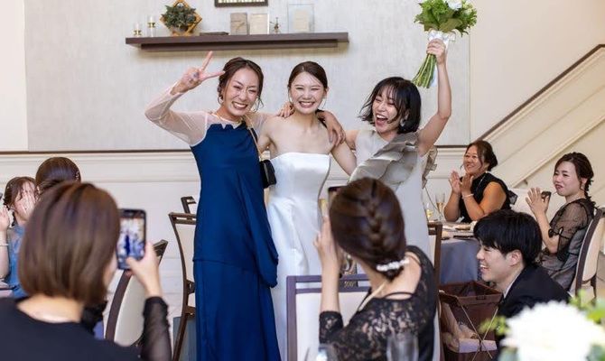 パラッツォドゥカーレ麻布での披露宴は『ゲストに楽しんでもらいたい!』をテーマに、友人のみのウェディングパーティーにしました。ゲストの方により楽しんでもらうためエスコートカードを作ったり、ファーストバイト時にくじ引きをして、ゲストにサプライズバイトを取り入れたのがこだわりです。