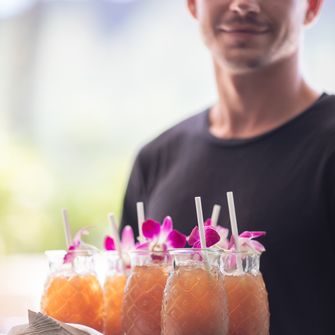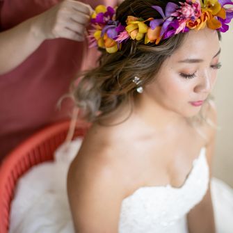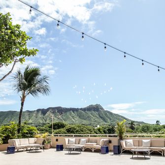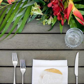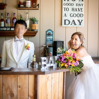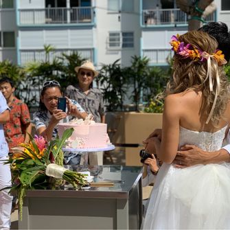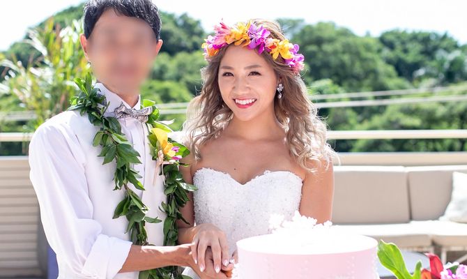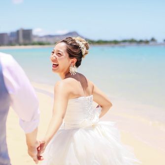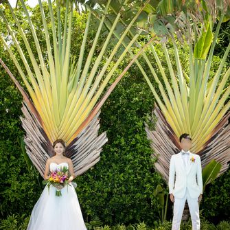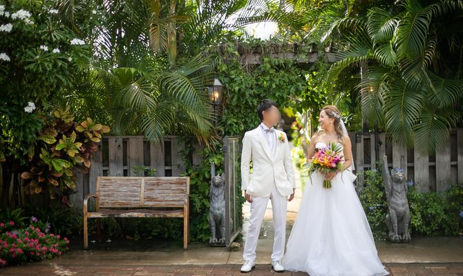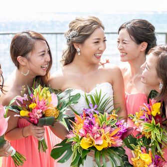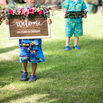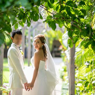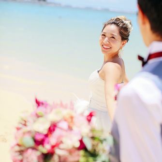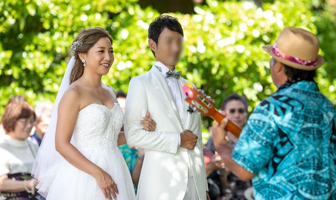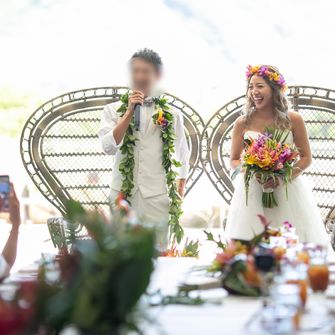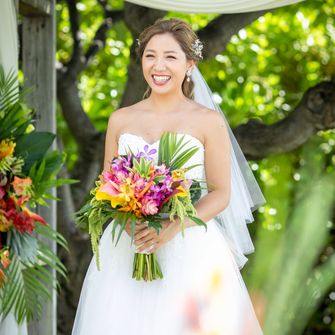 ハワイならではの青い空、青い海、緑に囲まれたガーデンウェディング