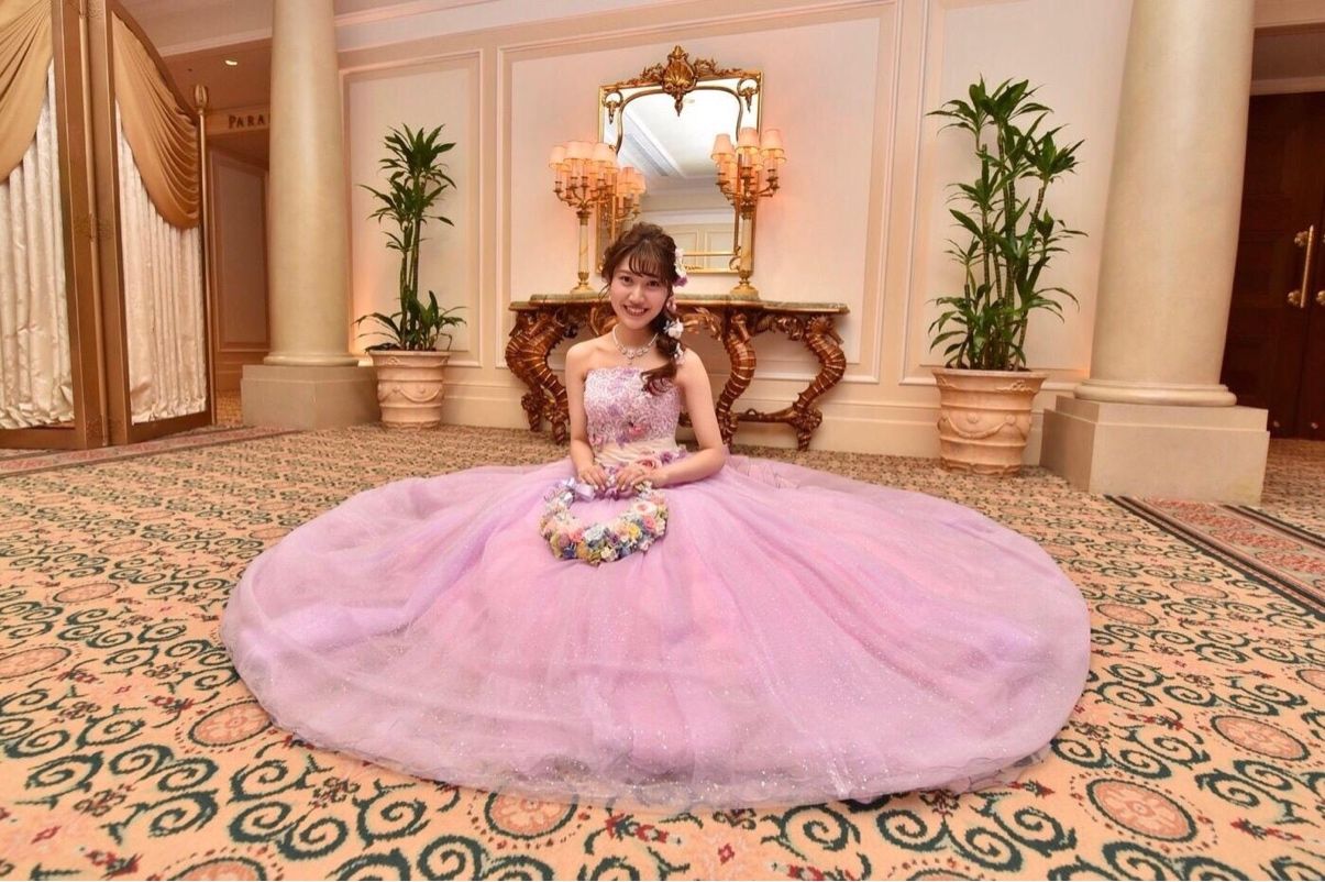 カラードレスではラプンツェルになりきりたかったので、パステルカラーのお花を飾りました!