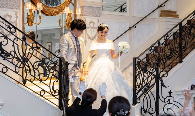 式場を決める上でどうしても譲れなかったことは、階段入場とバルーンリリース、ウェディングケーキの代わりに鏡開きでした。