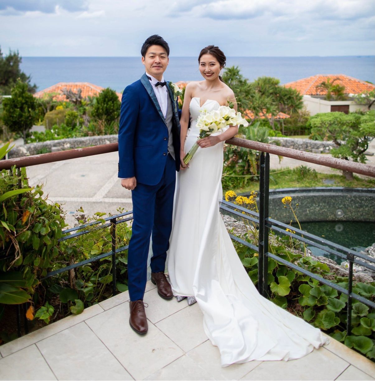 高砂の後ろの窓から海が一望でき、ガーデン側も後ろは海が見えます。扉、床、シャンデリア、全て沖縄の琉球と関連づけたものでつくられています。