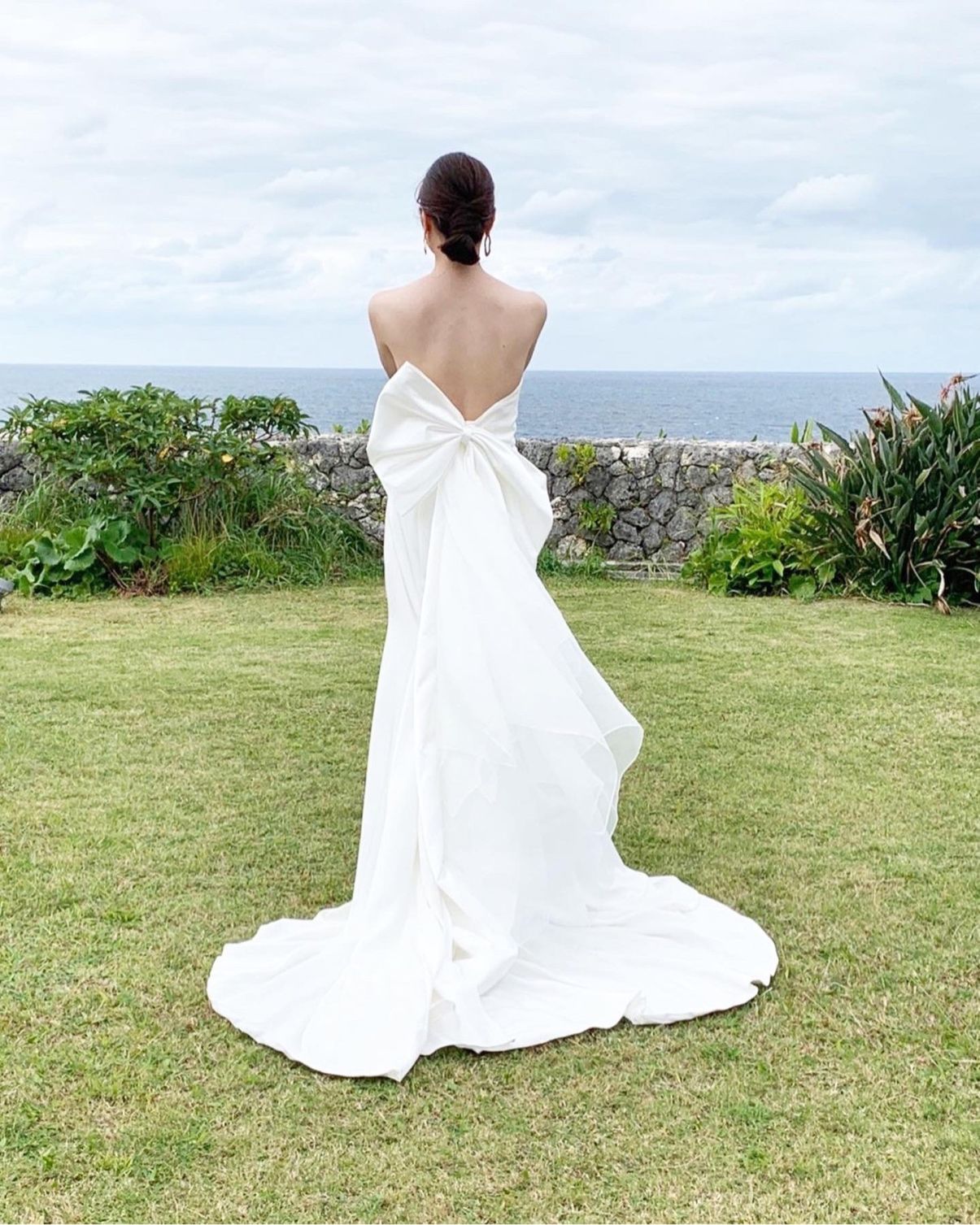 自分の身体に合う思い通りのドレスをフルオーダーしました。マーメイドドレスで、後ろに取り外し可能な大きなリボンをつけました。