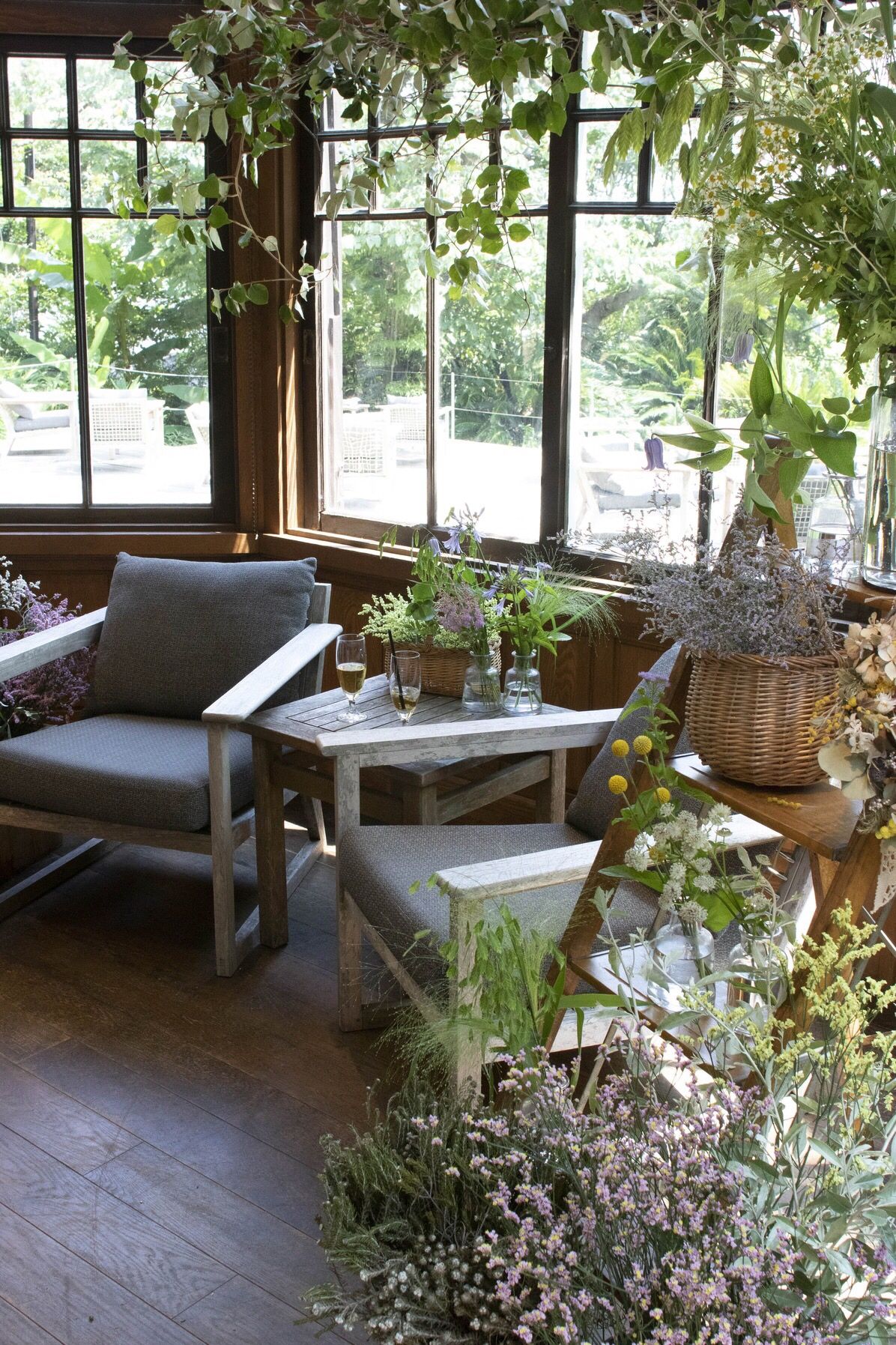 イメージとして鴨川ピクニックがあったので、野原に咲いているような小花とグリーンを中心の装花をお願いしました。