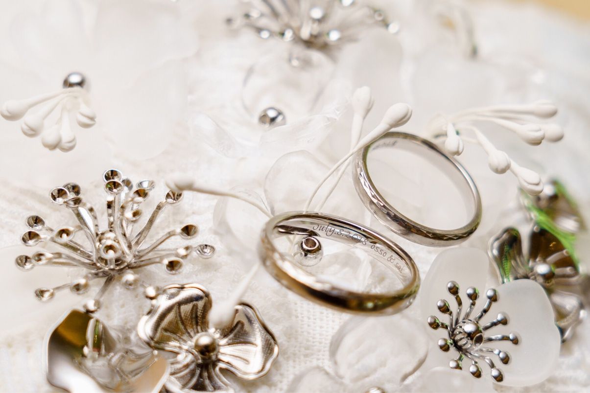 ドイツのマイスターが、 鍛造製法で作りあげられ一つの金属に200tのプレスをかけて圧縮し、くり抜いて削りあげるそうで、滑らかな着け心地とパラジウムの素材が軽くて2人とも意見一致で即決でした。