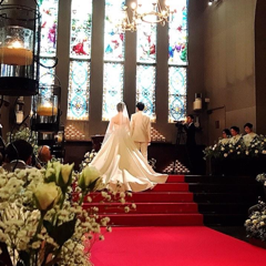 チャペルに合う高級感あるウエディングドレスにしました!