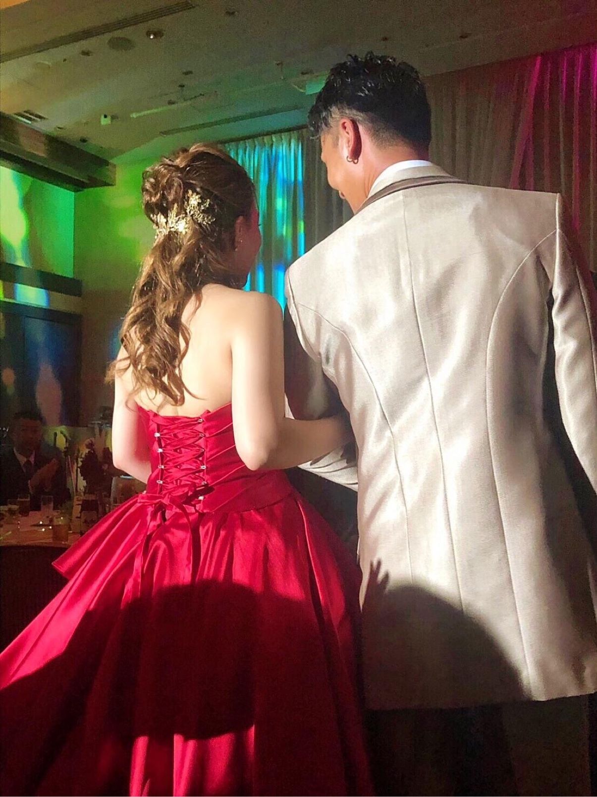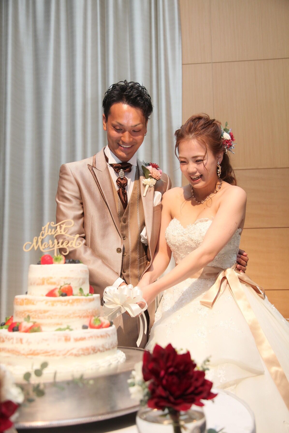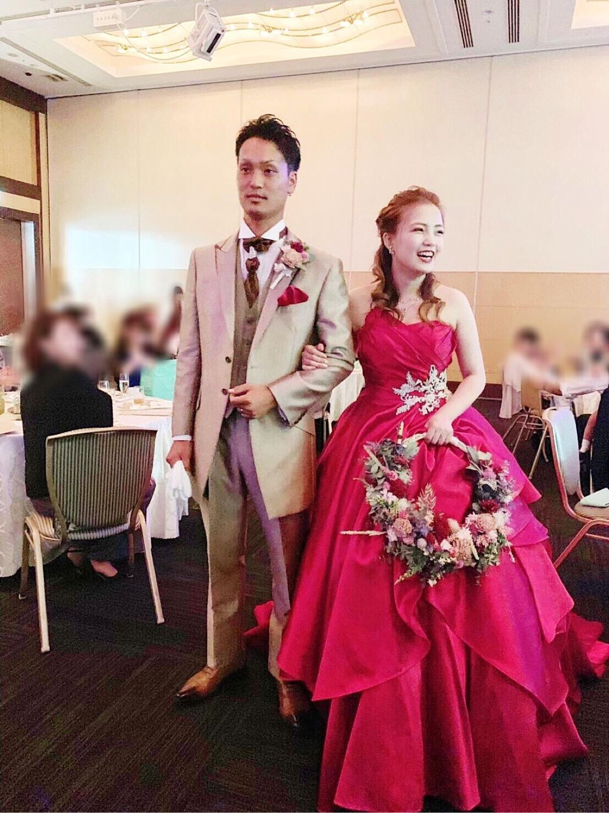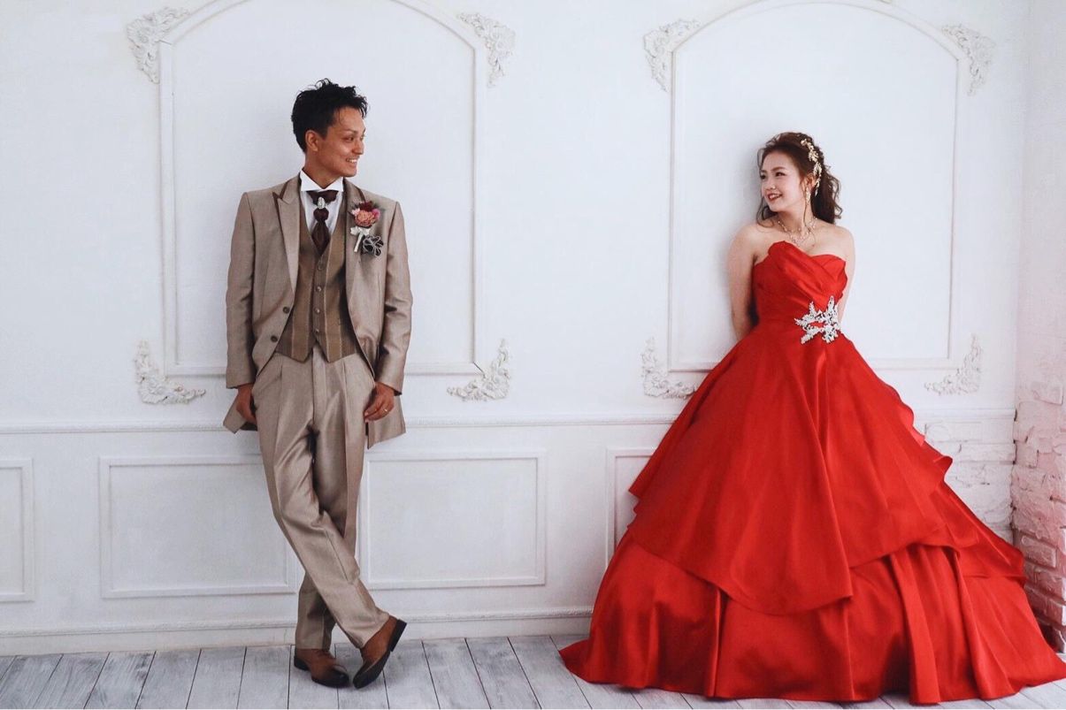 当日は、赤色のカクテルドレスにしました!