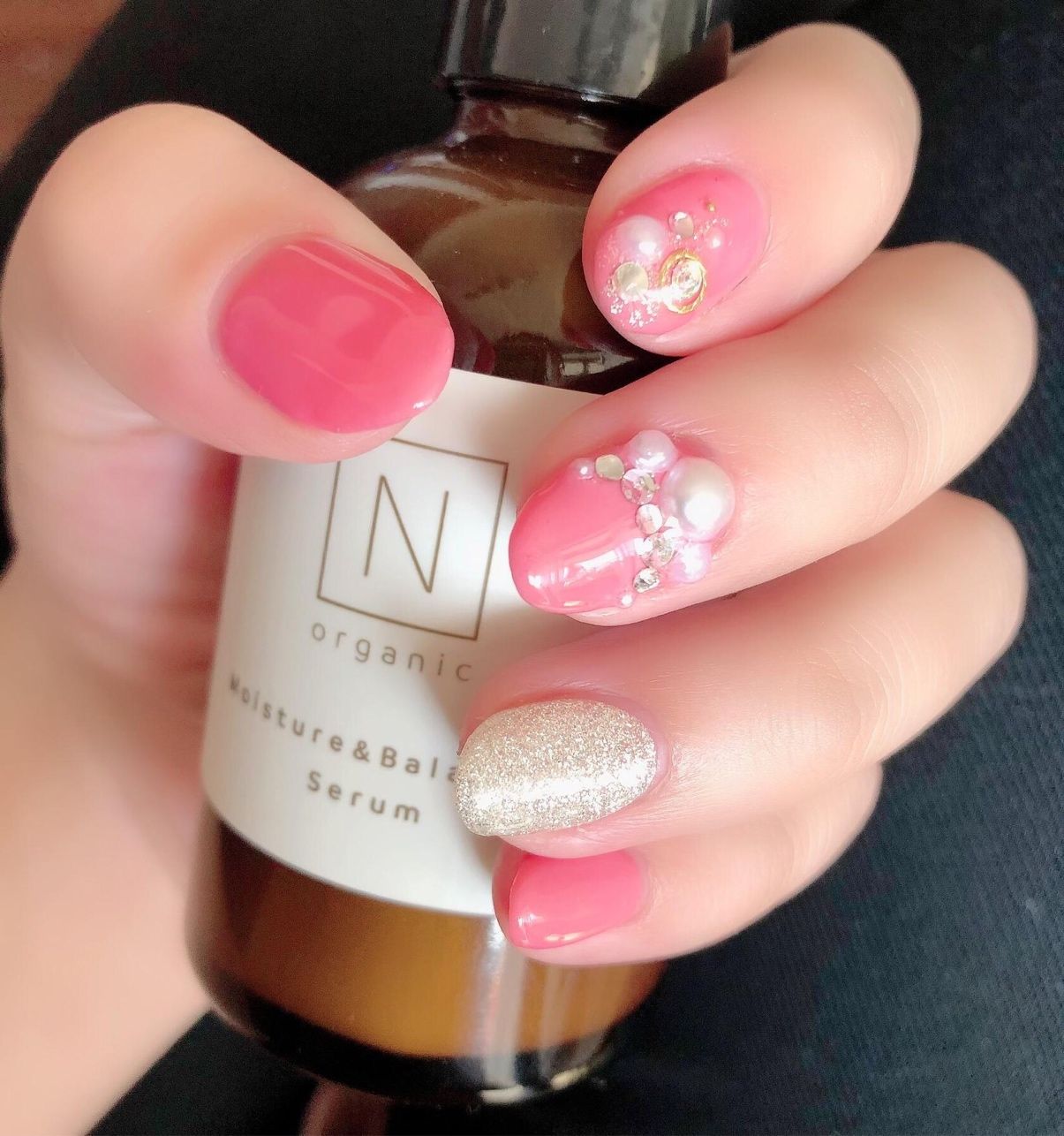 ピンク色をベースにして、キラキラ輝くものしました!