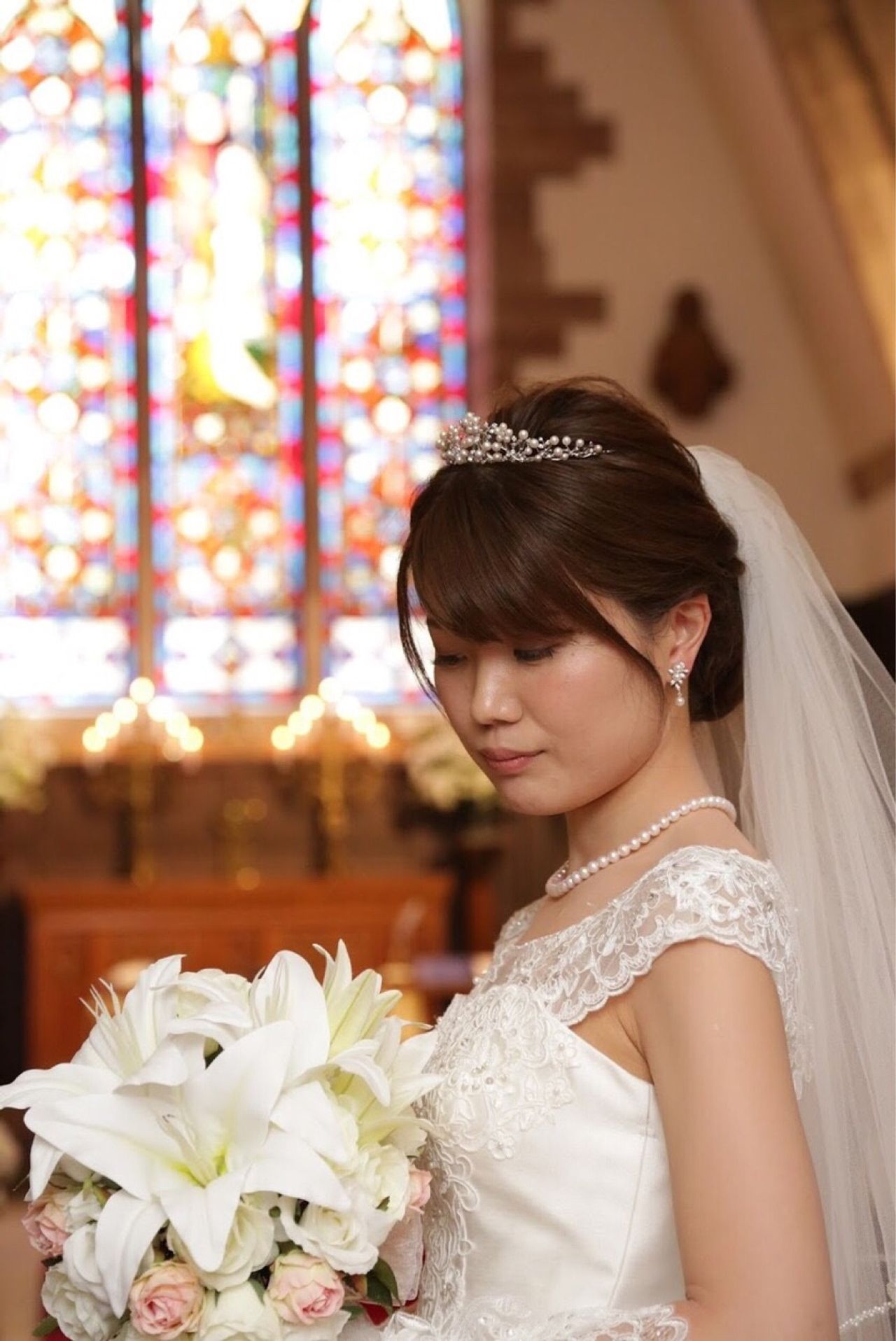 「ステンドグラスに赤絨毯、独立型のチャペル」を理想に探し始め、夫側のゲストを考慮して都市部にあるグラスミアを選びました。父と歩くバージンロードも適度な距離で、大満足の挙式でした。