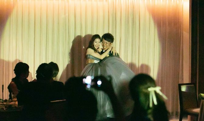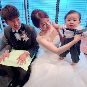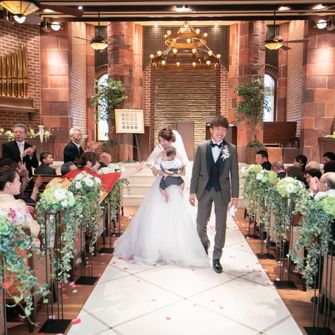 また子供のお披露目婚をコンセプトに、挙式での新郎の入場は息子を抱っこして一緒に入場しました。