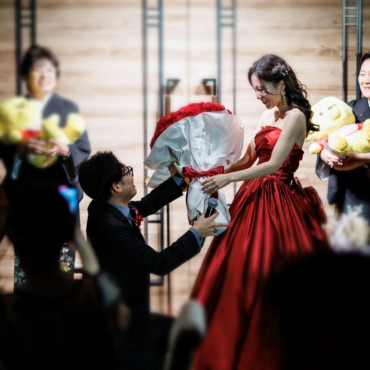 私たちは、当日までプランナーさん以外のスタッフさんとはほとんど会話する機会がありませんでしたが、サプライズ内容やゲストに関することなど、完璧に共有してくださっていたので、困ることがありませんでした。最後に退場した時は、当日のスタッフさんがドアの外で出迎えてくださり、本当に感動しました。