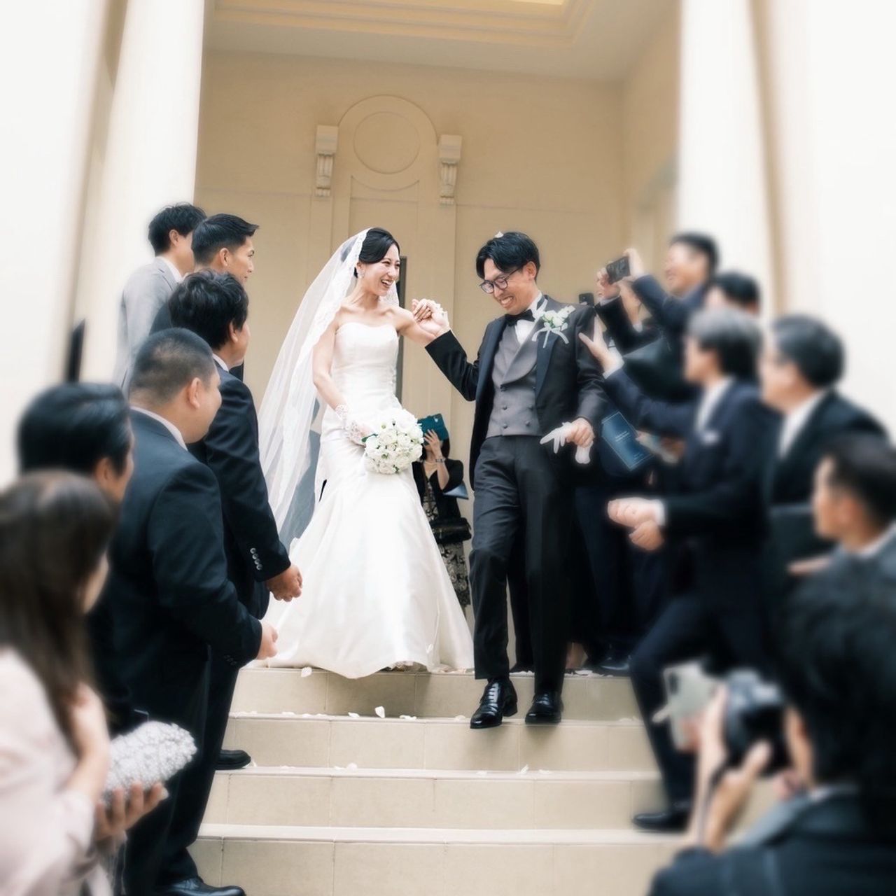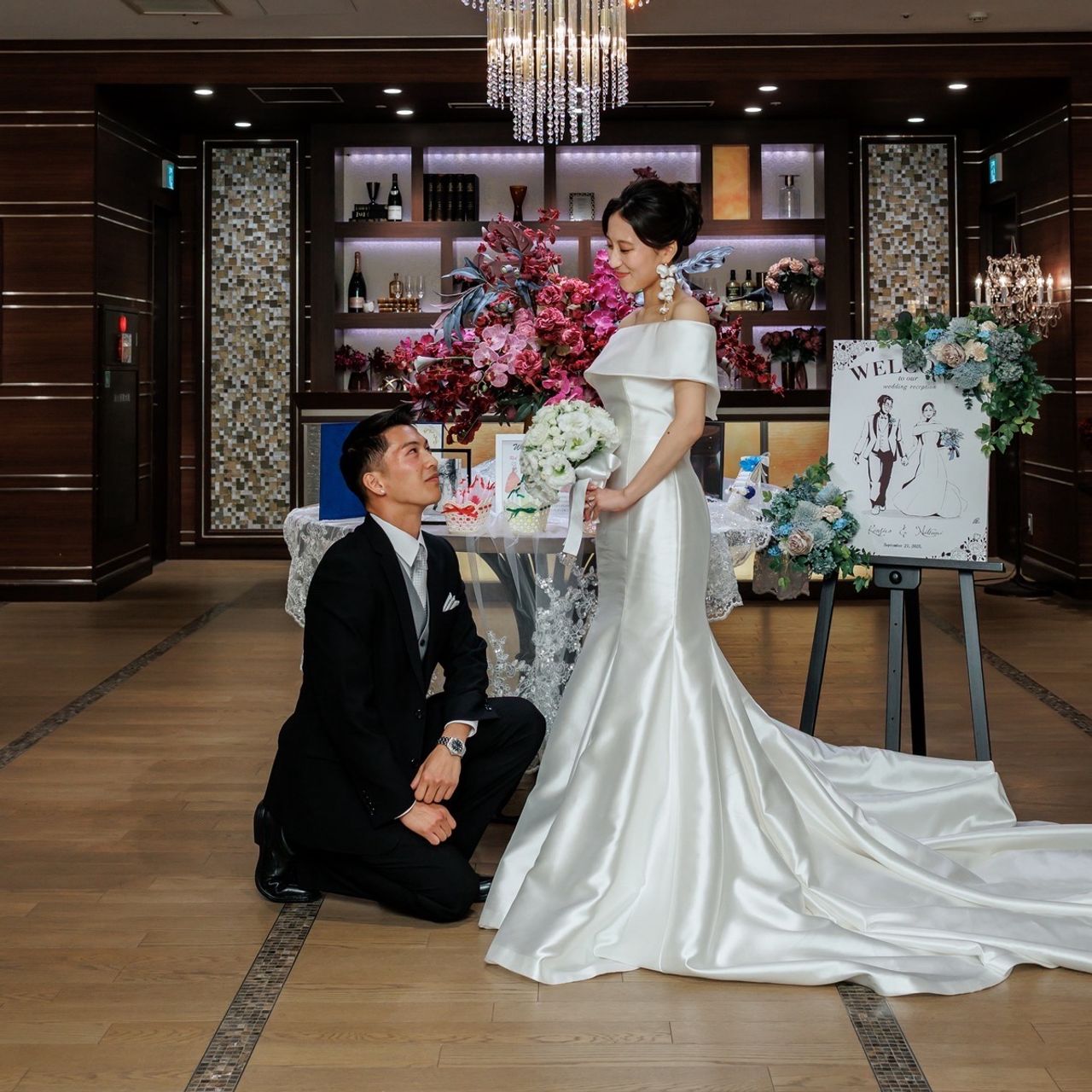 式場の決め手は、独立式のチャペル、ドレスが映えるチャペル内の階段、披露宴会場がラグジュアリーな雰囲気にできることでした。