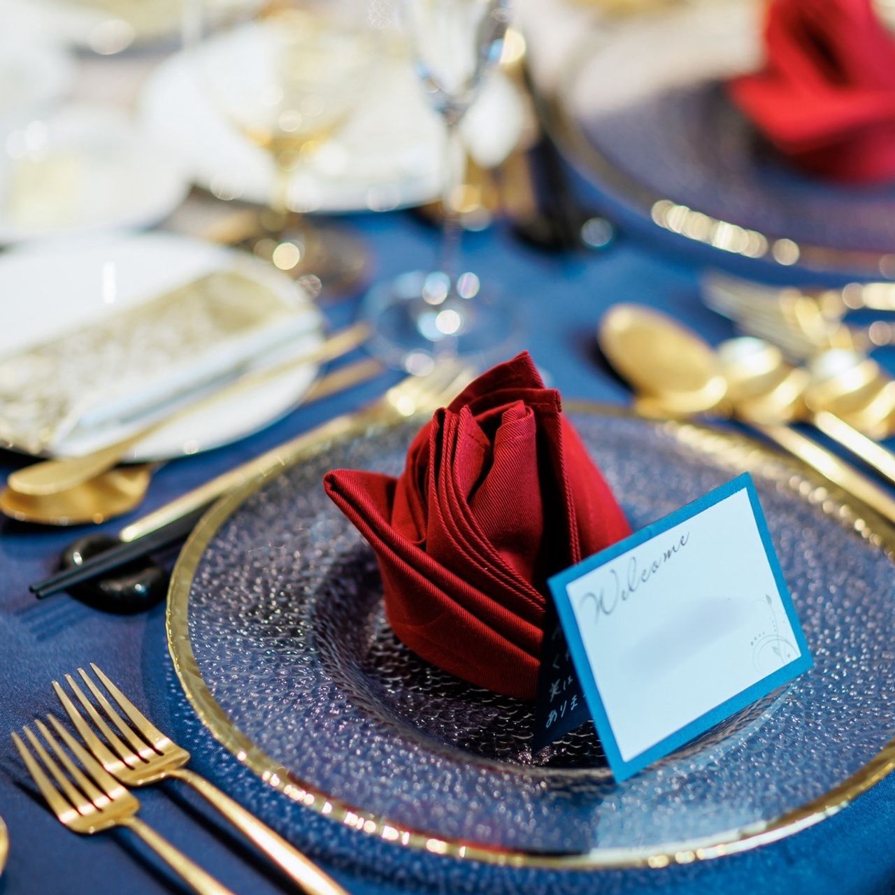 当日の仕上がりは、元々打ち合わせしていたテーマの色に沿った会場装飾になっていて、イメージ通りでした!