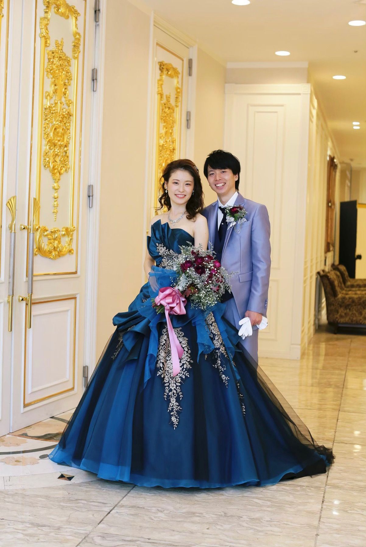 母に選んでもらったのですが、ゲストから大好評だったカラードレスです。