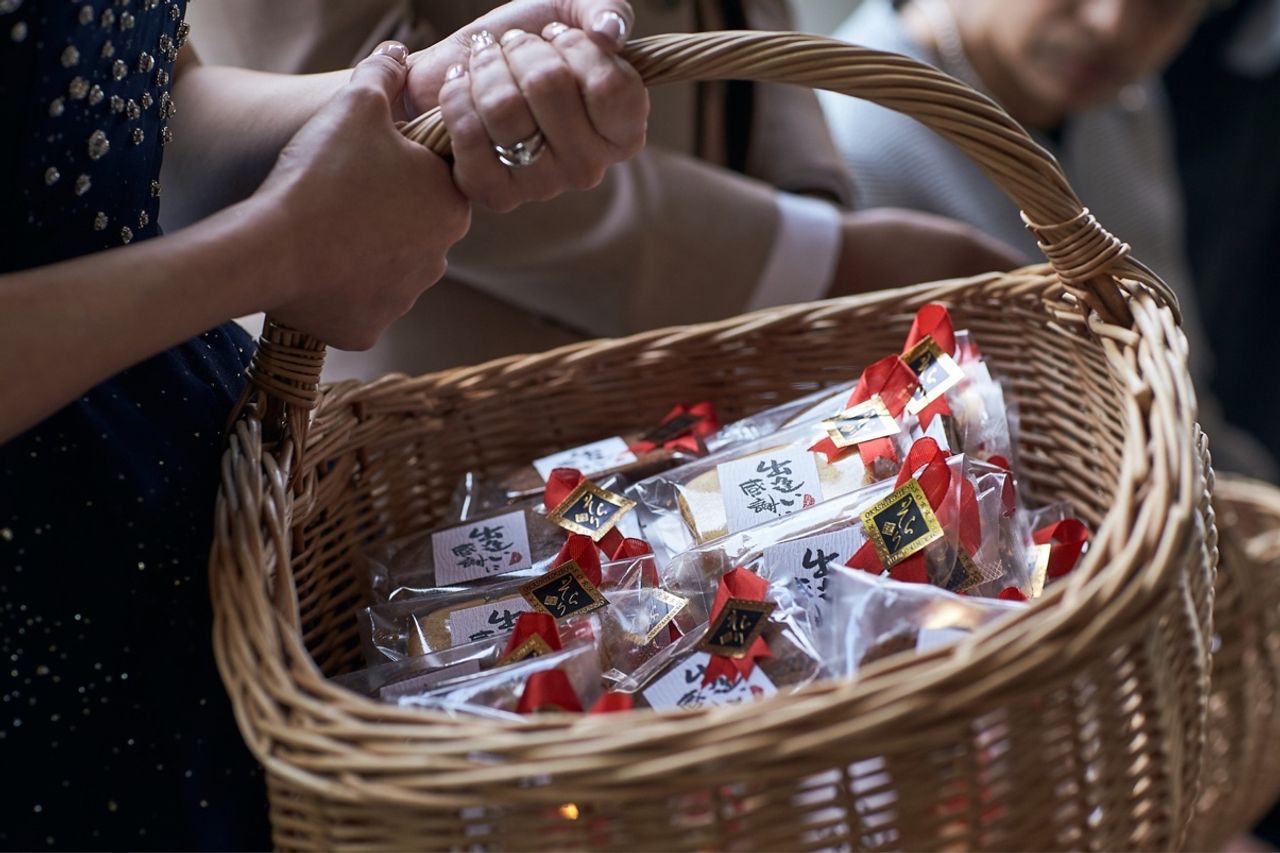 招待状の宛名書き、プチギフトの準備は自身で行いました。