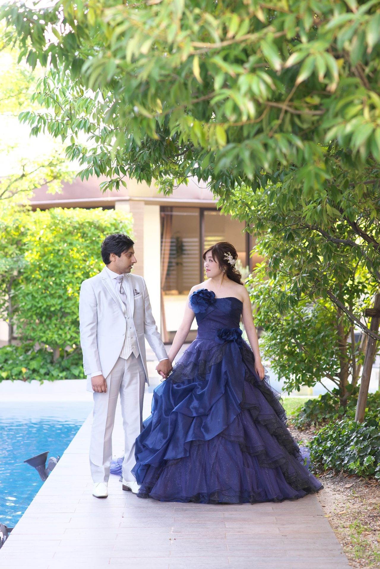 ネイビーベースにたくさんのキラキラがついた、大人シックなドレスに一目惚れでした。ディズニーもテーマの一つだったのでイメージにピッタリでした!新郎もネイビーのドレスを気に入り喜んでくれました。